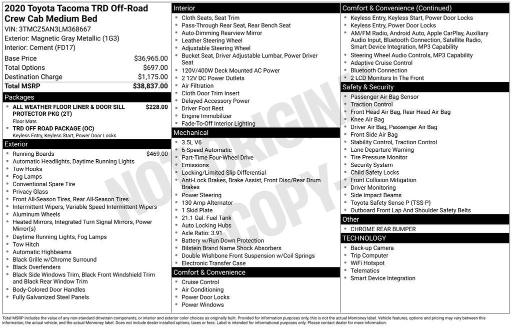 2020 Toyota TACOMA TRD OFFRD TRD Off-Road V6
