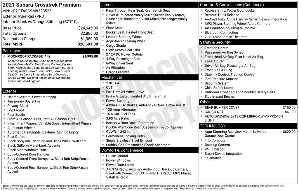 - Vehicle Name: Subaru Crosstrek