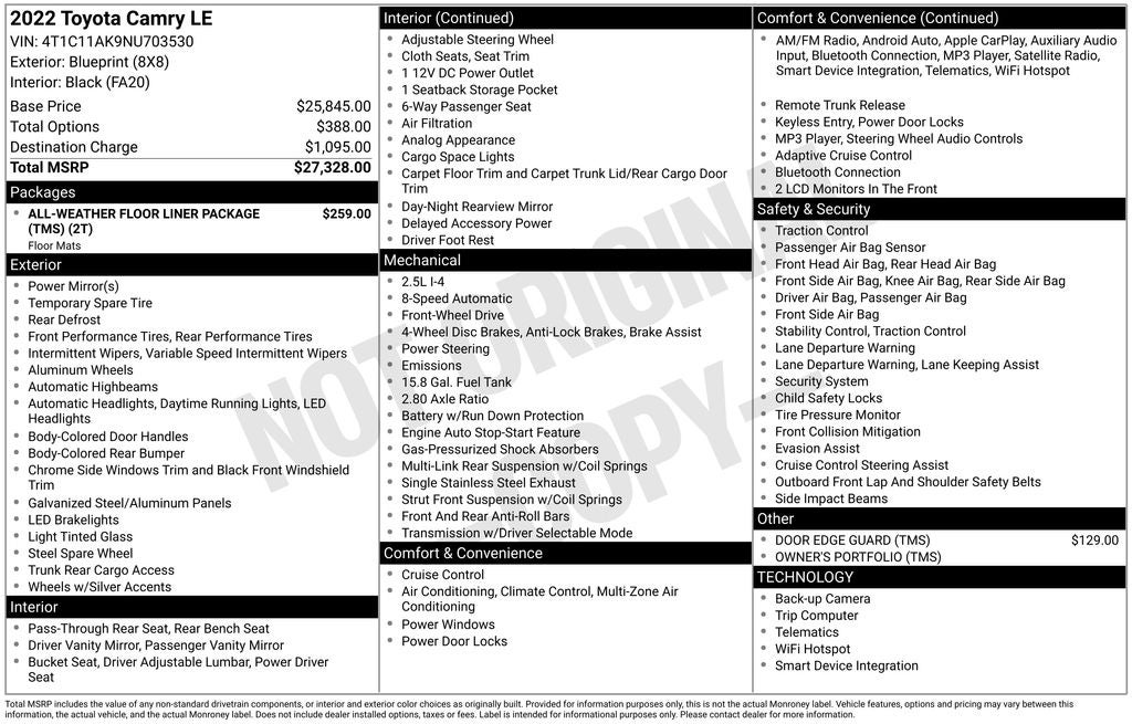 - Vehicle Name: Toyota Camry