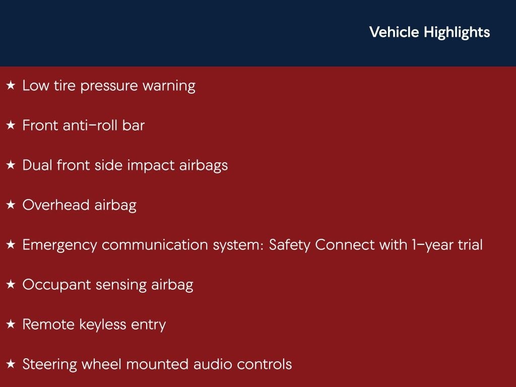 - Emergency SOS Capable Safety Connect with 1-year trial vehicle integrated emergency SOS system