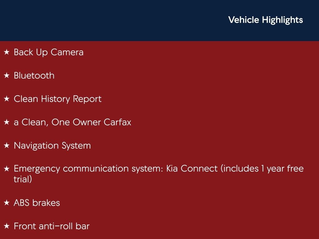 - Emergency SOS Capable Kia Connect (includes 1 year free trial) vehicle integrated emergency SOS system