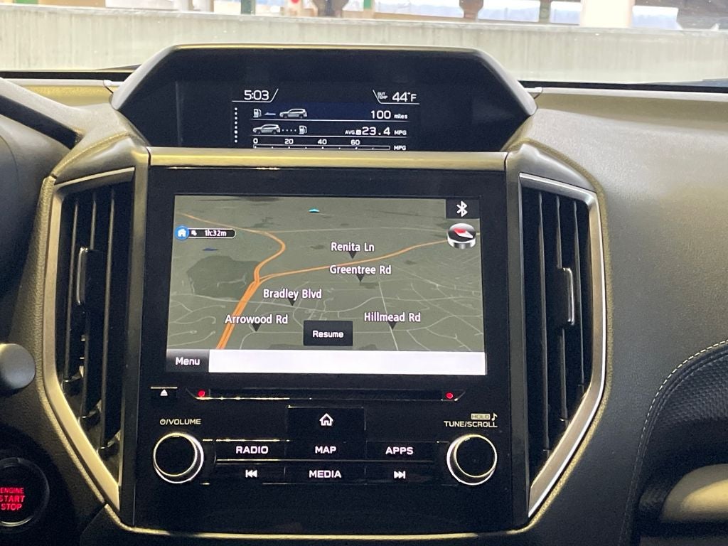 - Radio: Subaru Starlink 8.0" Multimedia Plus System -inc: AM/FM stereo HD Radio w/single-disc CD player, MP3/WMA/CRR/RW file capability, multi-touch gesture high resolution display screen, voice activated controls, Bluetooth audio streaming, hands-free phone connectivity and hands-free SMS text messaging connectivity (refer to subaru.com for cell phone compatibility), Near Field Communication (NFC), iPod control capability, SiriusXM All Access radio and Travel Link (4 months free trial/subscription required after), smartphone integration for AHA, Android Auto, Apple CarPlay, Pandora and Starlink cloud applications (refer to subaru.com for app availability), USB and Over The Air (OTA) audio system update, steering wheel controls for audio and Bluetooth, 6 speakers, 3.5mm auxiliary input jack and dual USB A input/charge ports