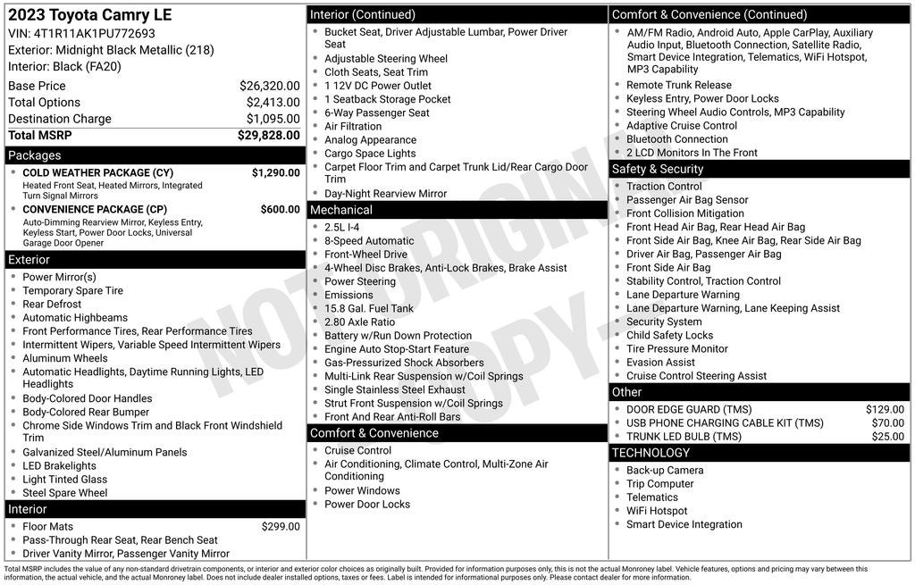 - Vehicle Name: Toyota Camry