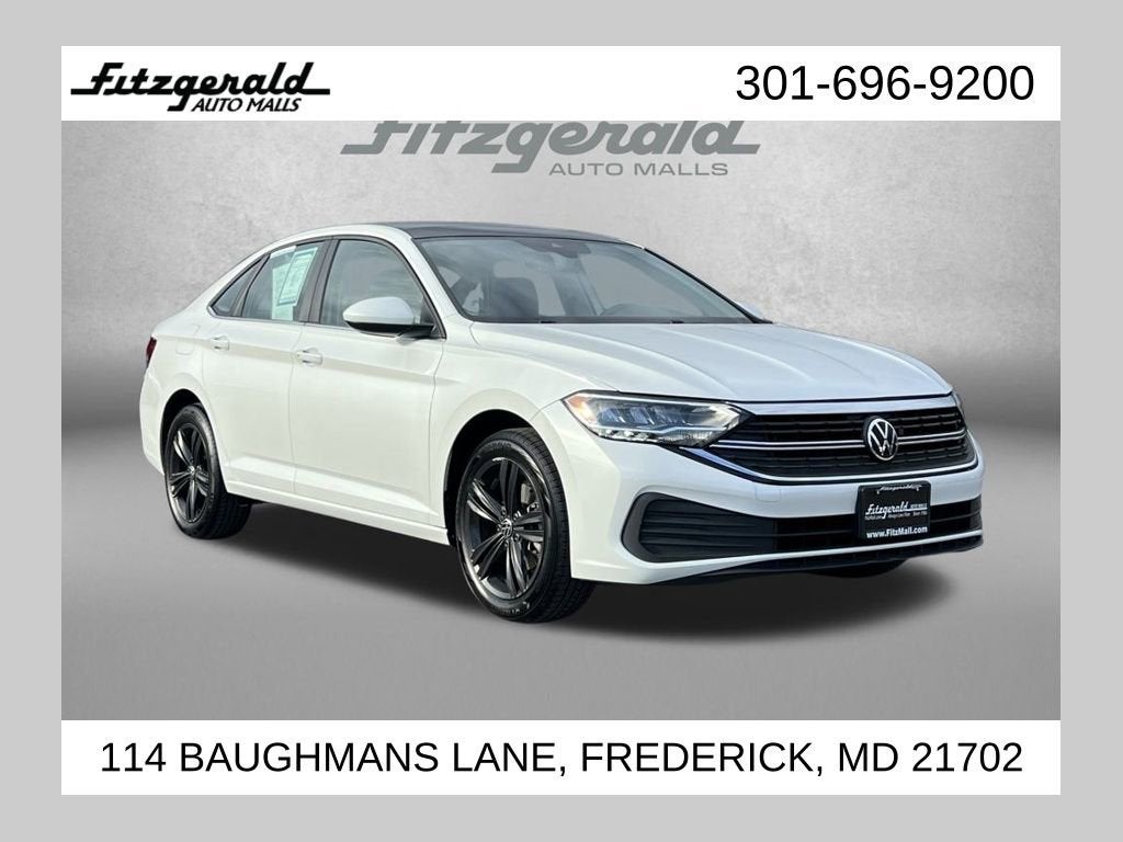 2024 Opal White Volkswagen Jetta 8-Speed Automatic with Tiptronic Titan Black Premium Synthetic. 1.5L I-4 DI DOHC Turbocharged 1.5T SE You will love our NO HAGGLE, NO HASSLE PRICING here at Fitzgerald Auto Mall. Ask us about our BUYER PROTECTION PLAN, LOANER CAR PROGRAMS, AND FREE Vehicle History Report. Can not find what you want?? NO PROBLEM! We have over 1,000 Pre-Owned vehicles available at WWW.FITZMALL.COM. You can also visit us in person at 114 Baughmans Lane Frederick MD, 21702 or Call Us @240-629-7301.