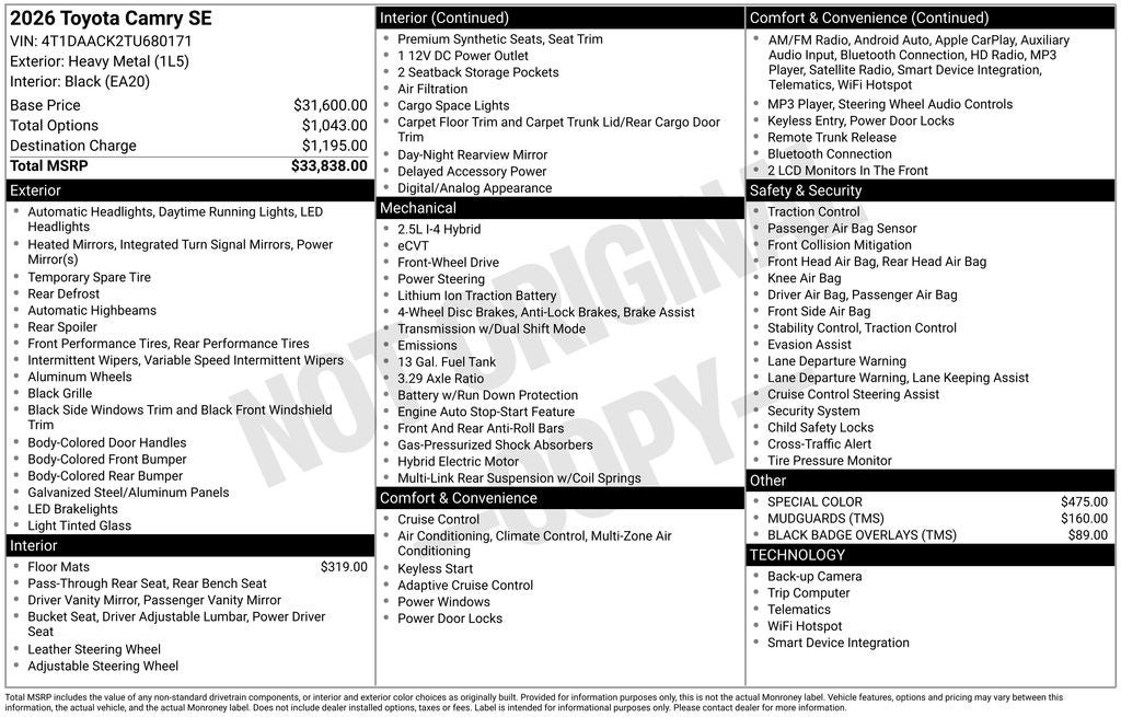 - Vehicle Name: Toyota Camry